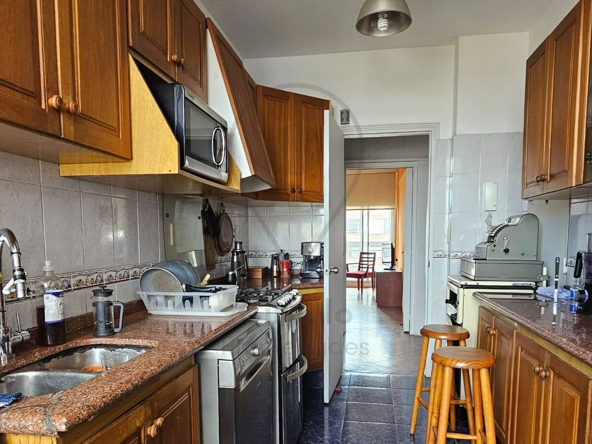 Estudio amplio y luminoso, ideal para home office, estudio o espacio creativo. Living con pequeño bar y balcón cerrado con cerramiento corredizo en aluminio: perfecto para disfrutar del sol y la vista en cualquier época del año. Cocina definida amplia con mesadas y mobiliario de calidad, comedor diario con vistas totalmente despejadas. Lavadero independiente con espacio de almacenamiento y baño social o de servicio. Zona de distribución que brinda privacidad a los dormitorios. Dormitorio principal con vista al frente y lateral. Placard empotrado. Dos dormitorios secundarios, con placares empotrados, muy iluminados y de generosas dimensiones. Baño completo, cómodo y funcional. Cada ambiente cuenta con ventanas que inundan de luz natural y garantizan una excelente ventilación, gracias a su ubicación en piso alto con vistas abiertas.